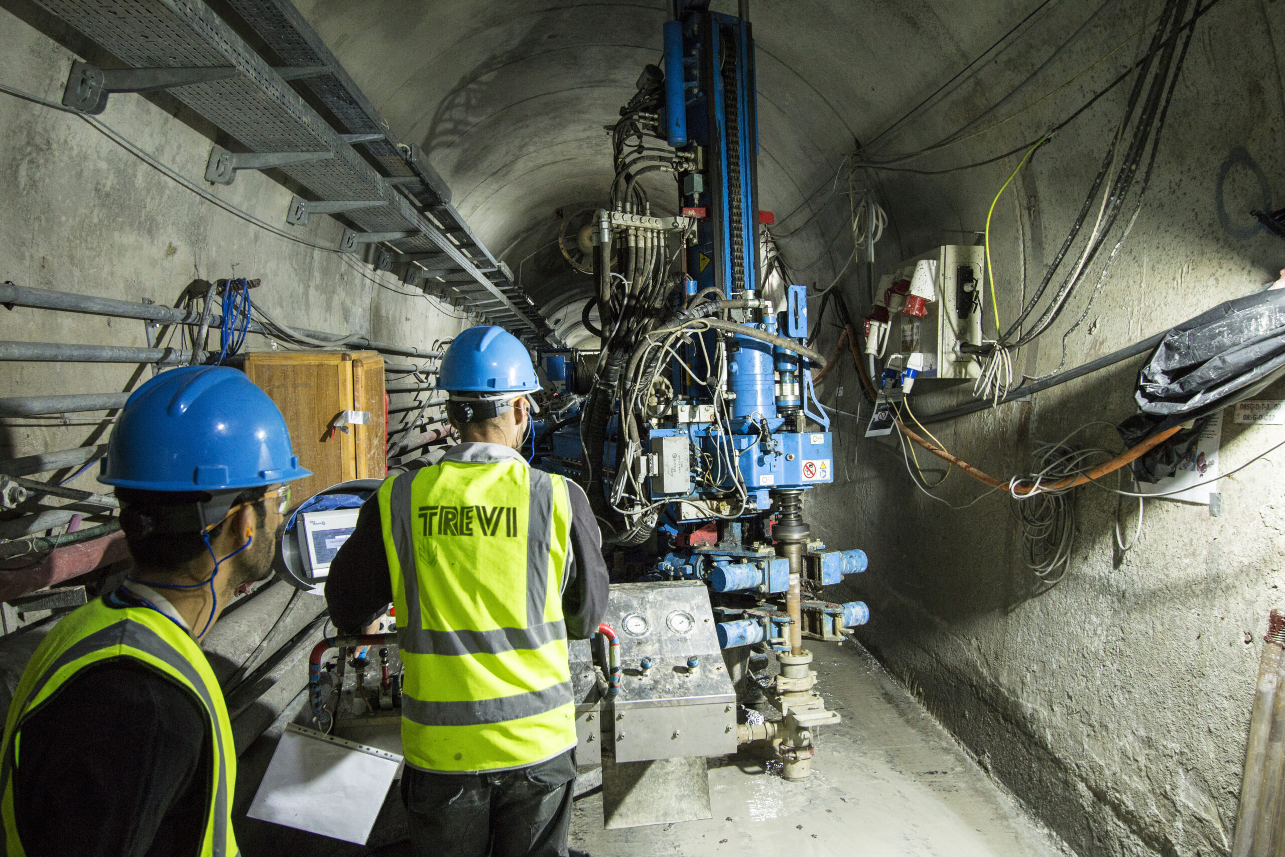 The drilling and injection works Drilling and grouting activities (including the result control) have been carried out in part from the grouting gallery and in part from the dam crest. The small dimensions of this horseshoeshaped gallery, 3.7 m high and 3 m wide, made necessary to employ small-size rigs. For this particular kind of intervention Soilmec used SM-5 rigs, while Soilmec SM-16 rigs with long stroke have been employed for surface interventions