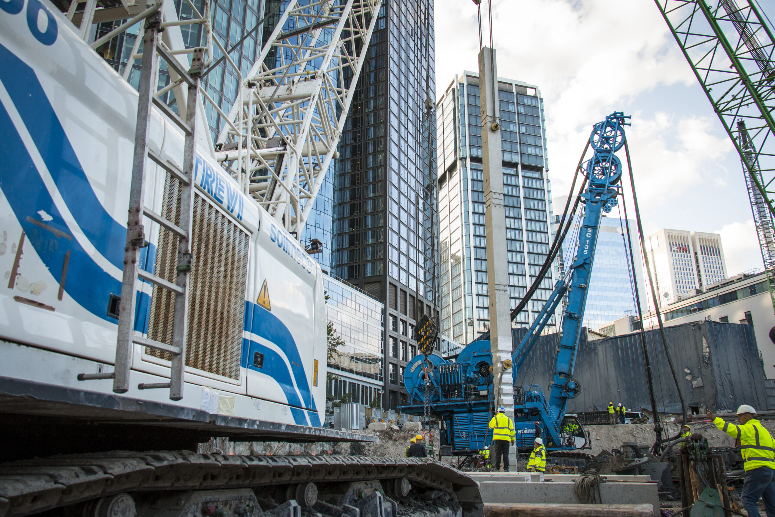 230 prefabricated columns were inserted on top of foundation piles in order to support both the structural loads of the structures above ground and the slabs during the excavation phases.