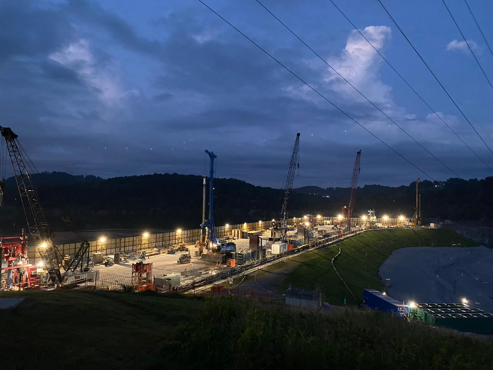 The Secant Pile was installed maintaining a strict alignment and overlap requirements while penetrating through a challenging mixture of soil and highly weathered rock within the upper portions of the dam’s foundation. The cutoff is keyed into the sloping face of the existing concrete dam, forming a continuous composite seepage barrier along the entire alignment of the earthen dam. Over 300 secant piles were installed to create 850-ft long secant pile barrier, totaling 113,000 square feet of cutoff wall, and approximately 27,000 cubic yards of concrete.