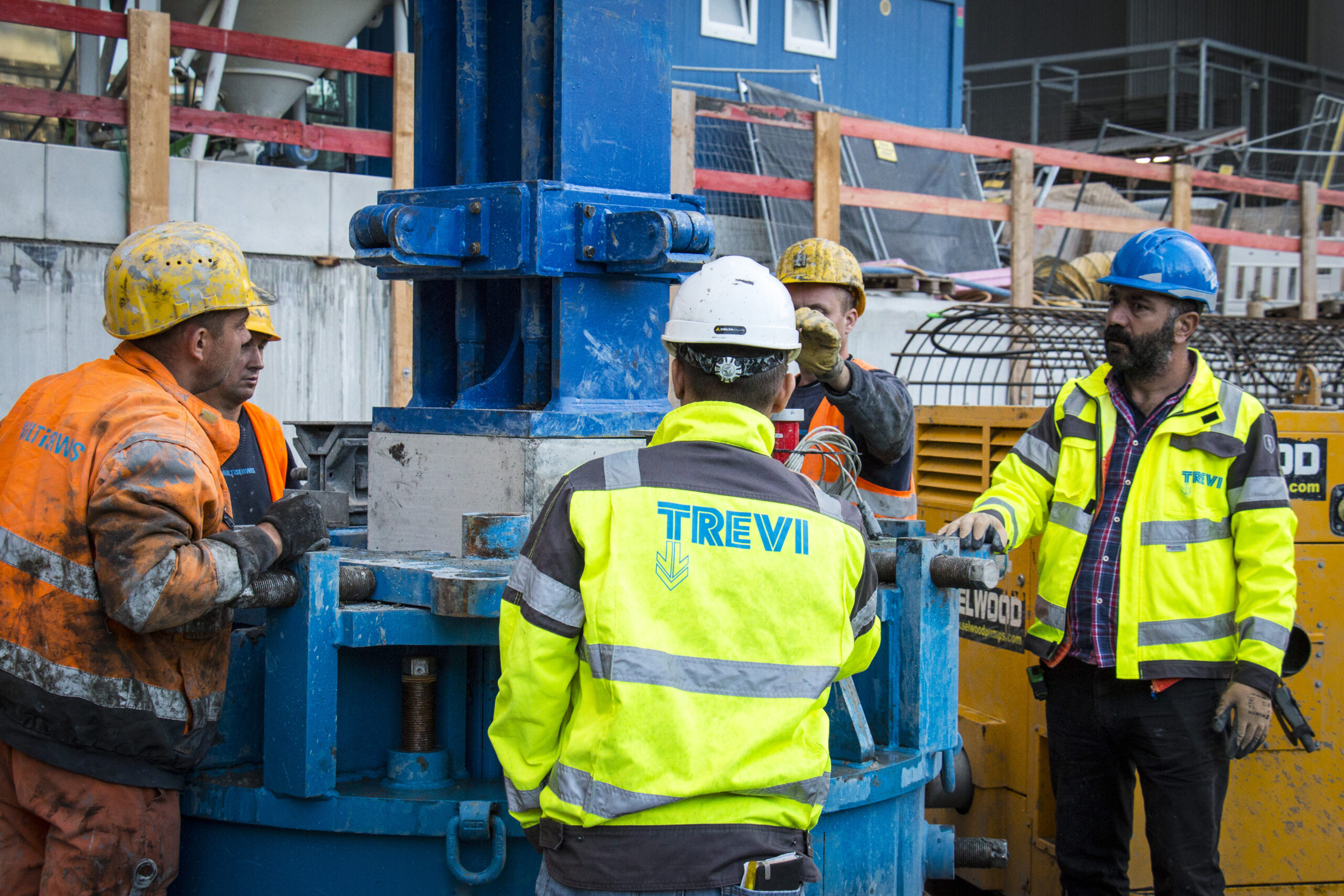 Nell’ambito del progetto Frankfurt 4, Trevi Spa ha adottato un innovativo sistema per il posizionamento dei pilastri prefabbricati all’interno di alcuni pali di fondazione. Per la loro installazione, una volta completata la perforazione dei pali, viene installata la gabbia di armatura.