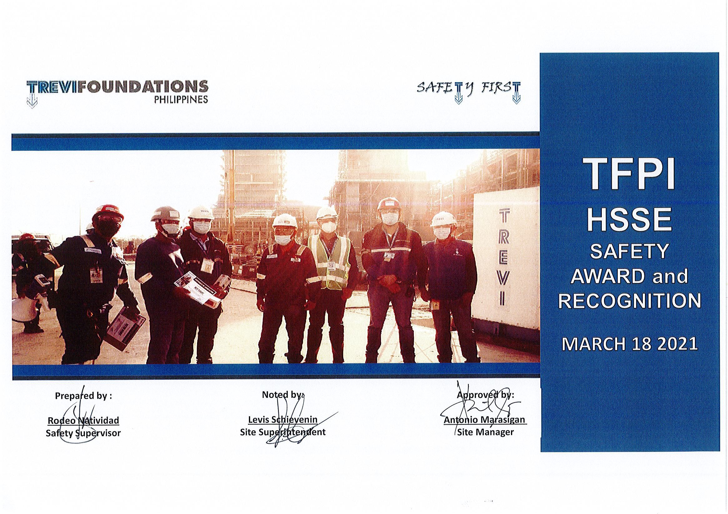 - a certificate of Appreciation for two Drilling Operators awarding their outstanding work performances and excellent contribution to safety (18th mar 21).