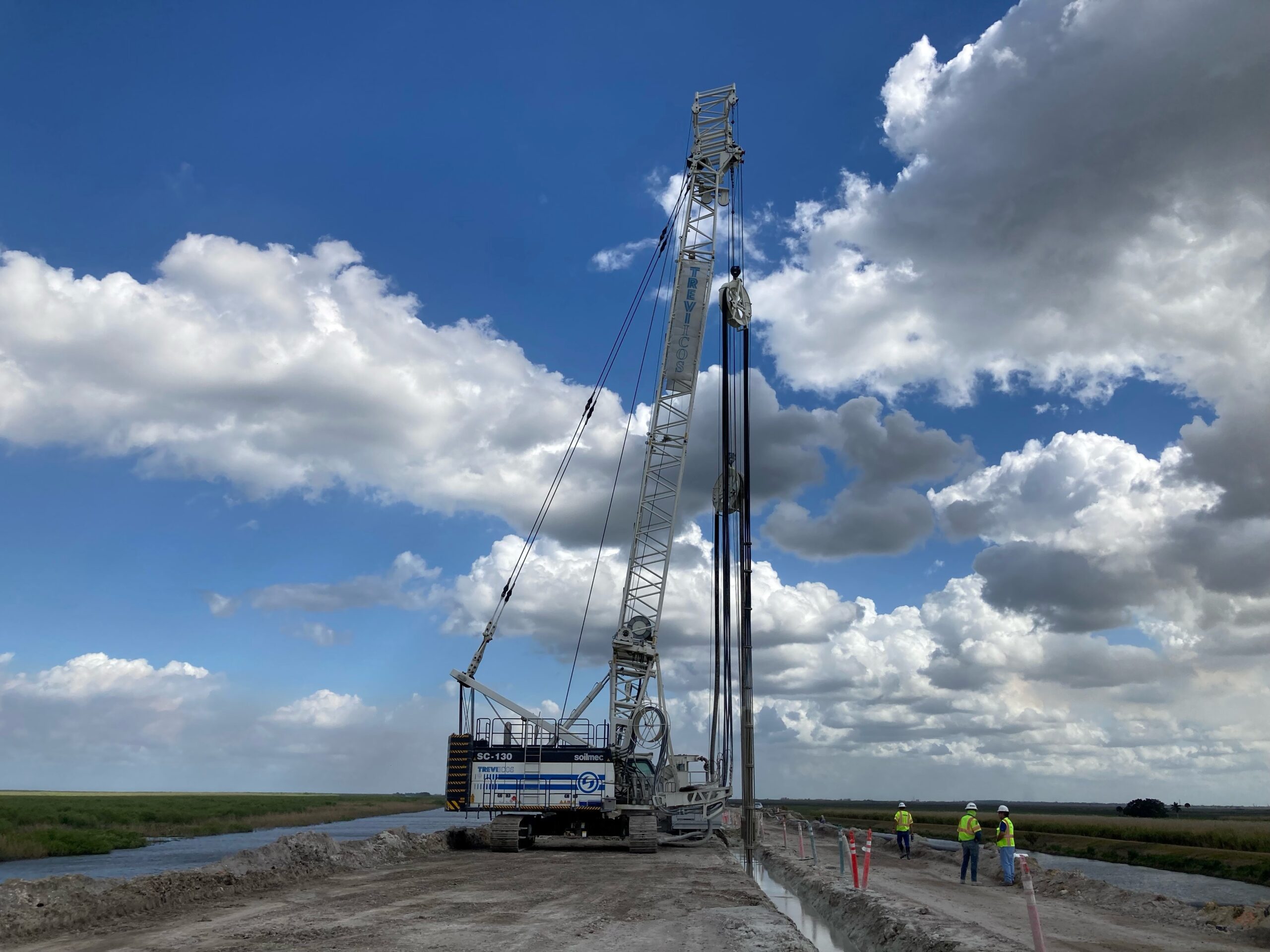 The Contract for TREVIICOS started on July 2019 and included the installation of approx. 1.8 million SF of Cutoff Wall. The cutoff was installed using two different technologies: Installation of Conventional Cutoff Wall (“CCOW”) by SHS by hudromill and Jet Grouting Cutoff Wall (“JGCOW”) with pre-drilling. The JGCOW connected the CCOW with the existing structures located at different location within the project site.