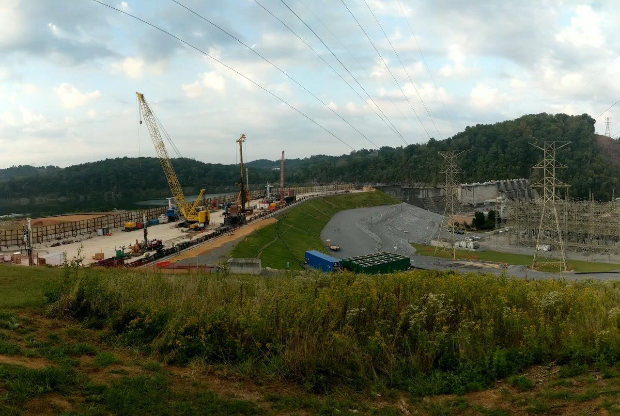 After the completion of the enabling grouting works, in 2018 the Treviicos-Nicholson Joint Venture was awarded the contract for the installation of the cutoff wall. With the working platform at approximately elevation 1,400 feet and the bottom elevation of the cutoff wall as low as 1,230 feet, the wall has a depth of approximately 170 feet, and is formed by a single row of secant piles installed through embankment, foundation soils, and rock; including tie-in of wall on sloping face of existing concrete dam.