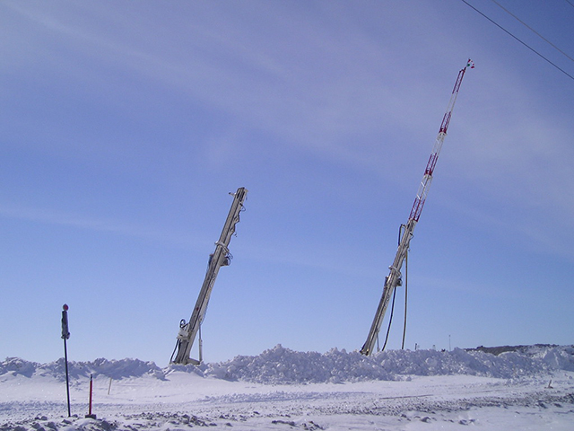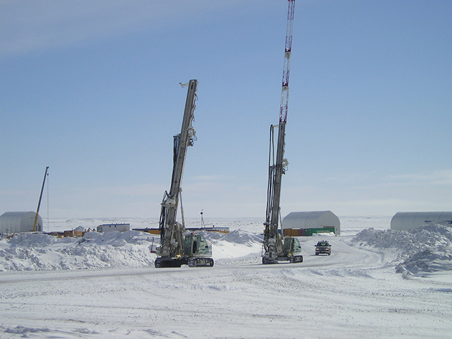 The first phase of the work was performed during the winter months with temperatures reaching the -50 degrees Celsius (-58 Fahrenheit). Work was conducted inside heated domes for both the drilling and mixing operations.
