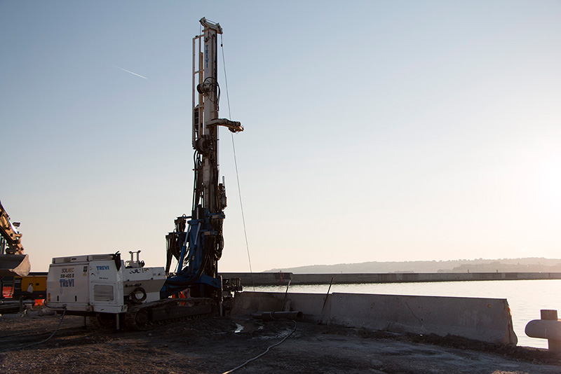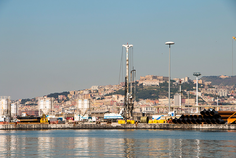 A.T.I. Trevi (Trevi – C.C.C.) is carrying out the second execution stage of the general project for the construction of a new Container Terminal and Sediment Tank in the Port of Naples, in the pre-existing eastern dock. The contractor is the Port Authority of Naples.