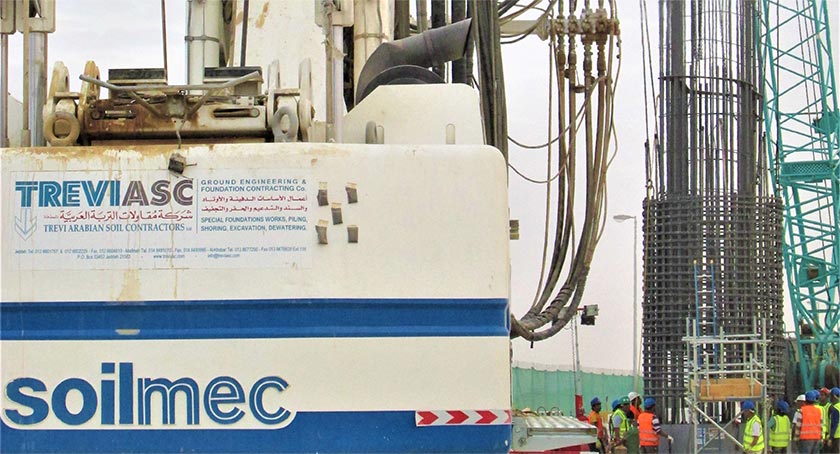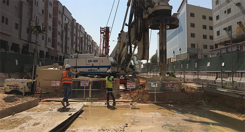 Riyadh Metro Project comprises of six lines; Lines 1 & 2 viaducts piling works were awarded to TREVIASC in 2014 and along the course of construction from 2014 to 2017 several piling works have been added to TREVIASC’s scope of work. The diameter of the piles are 3.0m (with occasionally a dia. 4.0m cap) for the monoshaft foundations and 0.60m, 1.20m & 1.50m for the multiple shaft foundations, where the pile lengths vary from 6.0 m to 25.0 m depending on the rock level formation. Due to the large pile diameter and extended length of some piles, a 29-ton reinforcement has been recorded to be the heaviest reinforcement installed. The project is nearing completion, at the end 542 nos. of 3.0-4.0m diameter piles and 294 nos 0.60-1.50m diameter piles will have been installed.
