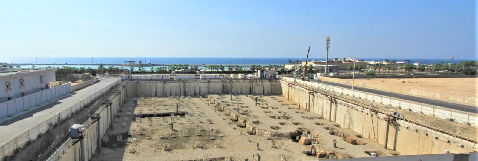 The SAIL TOWER (formerly Kempinski Tower) site is located on the Corniche Road, along the Red Sea shoreline. The scope of TREVIASC in SAIL TOWER project was to execute the full enabling works comprising piling, diaphragm wall (by hydromill), anchoring, injected grout plug, excavation and dewatering. It is a unique undertaking with an excavation extending down to 3 basements on Jeddah Corniche with a smoothly controlled dewatering through the presence of a well engineered and executed tanked system.