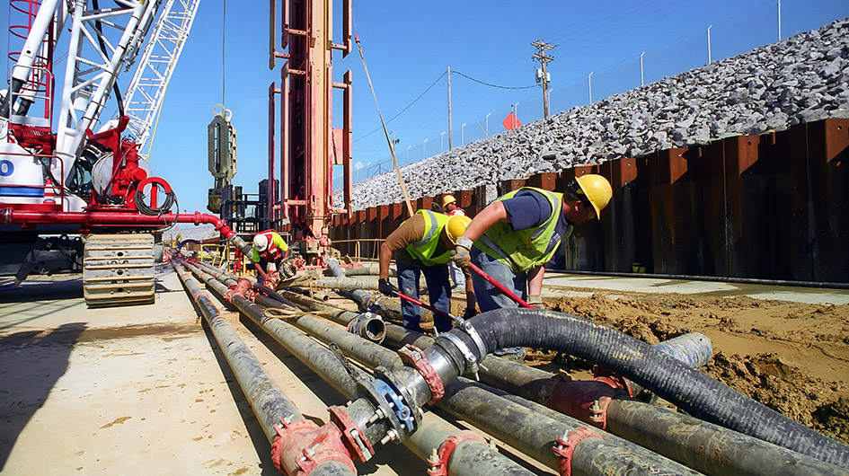 Once the PCEW is finished in one area, several technologies are utilized to install the barrier wall itself. Some of these technologies were successfully developed, by the TREVI Group, specifically for this project to become new breakthroughs in the foundation industry. Out of these new technologies, the Directional Drilling, used to guide the secant piles, which are installed with Reverse Circulation Drilling became the activity driving the project to an unprecedented level of quality.