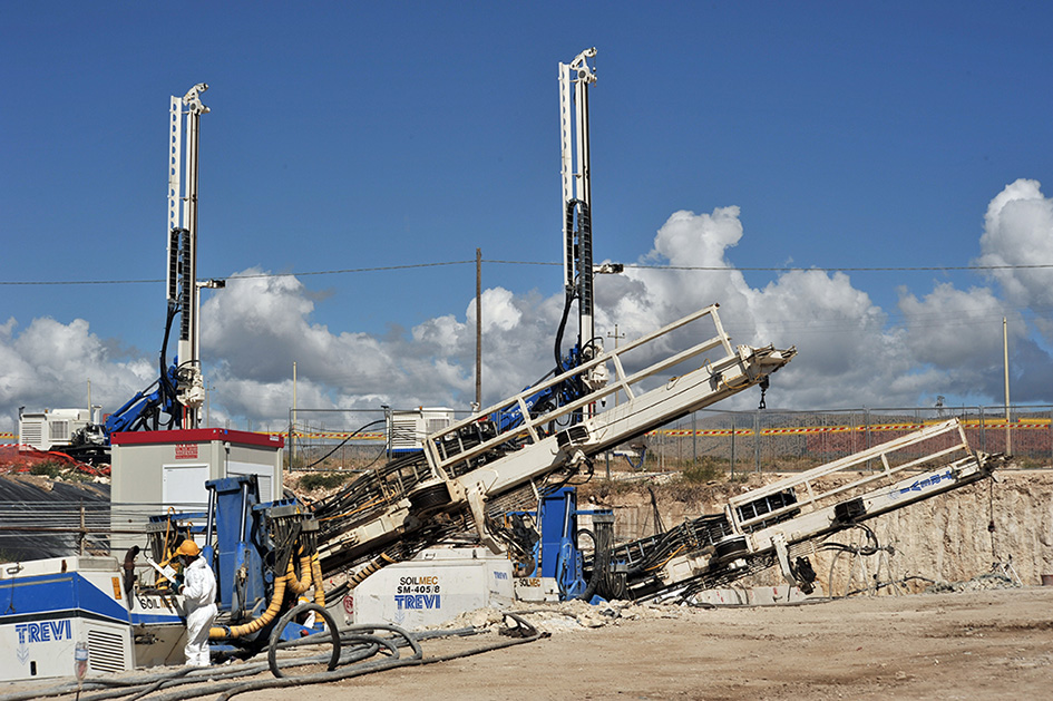 The TDDT has been successfully used in some important Trevi jobsites for soil consolidation and waterproofing. Drilling can be either rectilinear or curvilinear. In the latter case, the radius of curvature depending on the diameter and thicknesses of the rods and casings used.