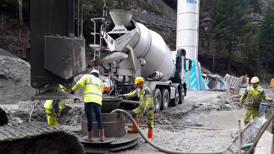 Within 6 weeks, a secant bored pile wall consisting of 27 piles with pile lengths of 24 m was executed.