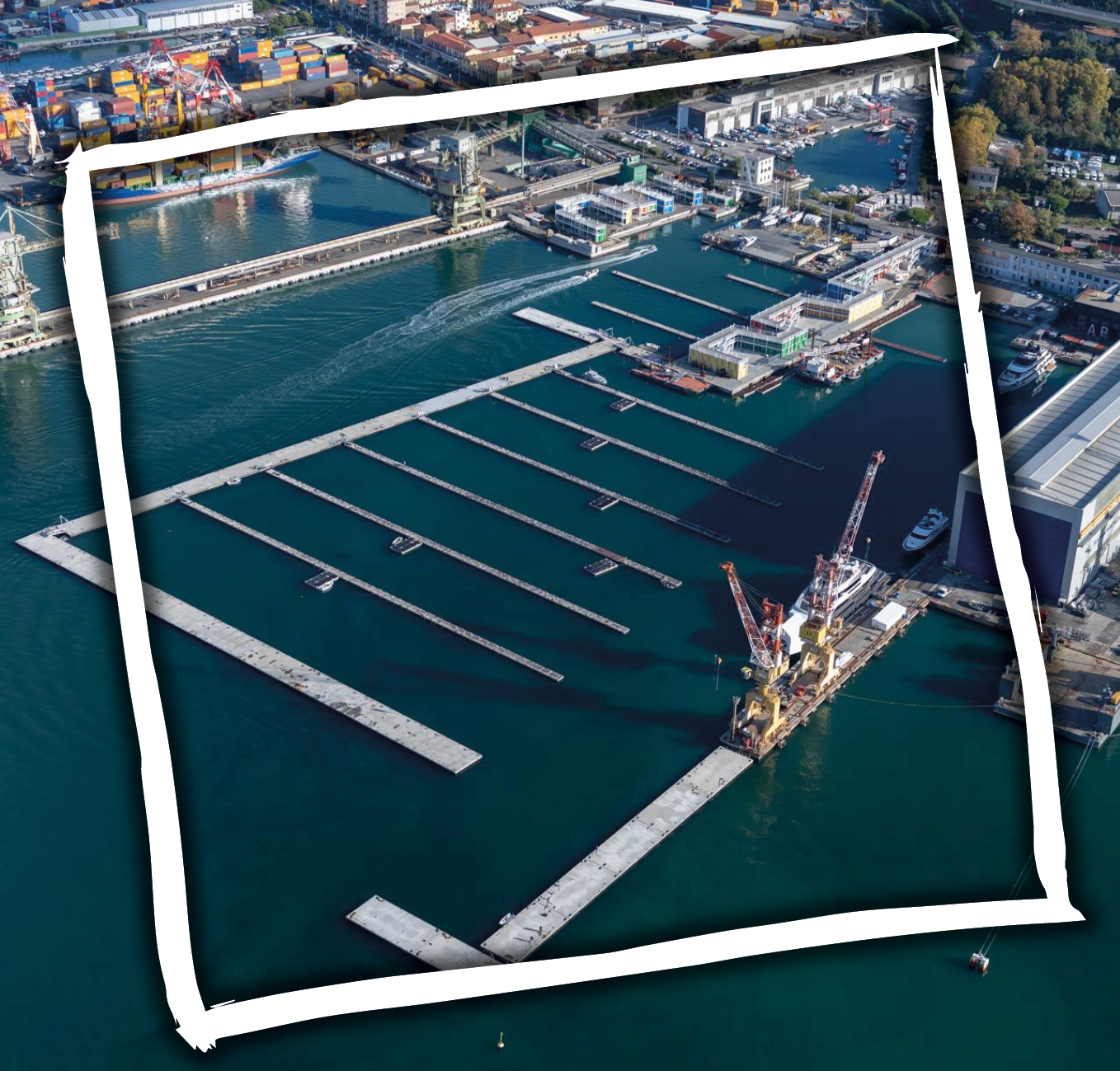 The project covers the construction of the buildings, the recovery of the existing quays and the creation of floating docks. The project entails a landing place protected by floating breakwaters and the laying out of areas on land, with the construction of buildings to serve the nautical sector and of closed and covered spaces, over a surface of about 5000 m2, which are to be distributed on levels and divided into two areas of intervention: the Darsena di Ponente (Western Dock) and the Molo Pagliari (Pier)