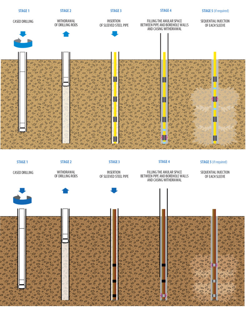 micropilotes incluyen la hélice de perforación y los sondeos.
