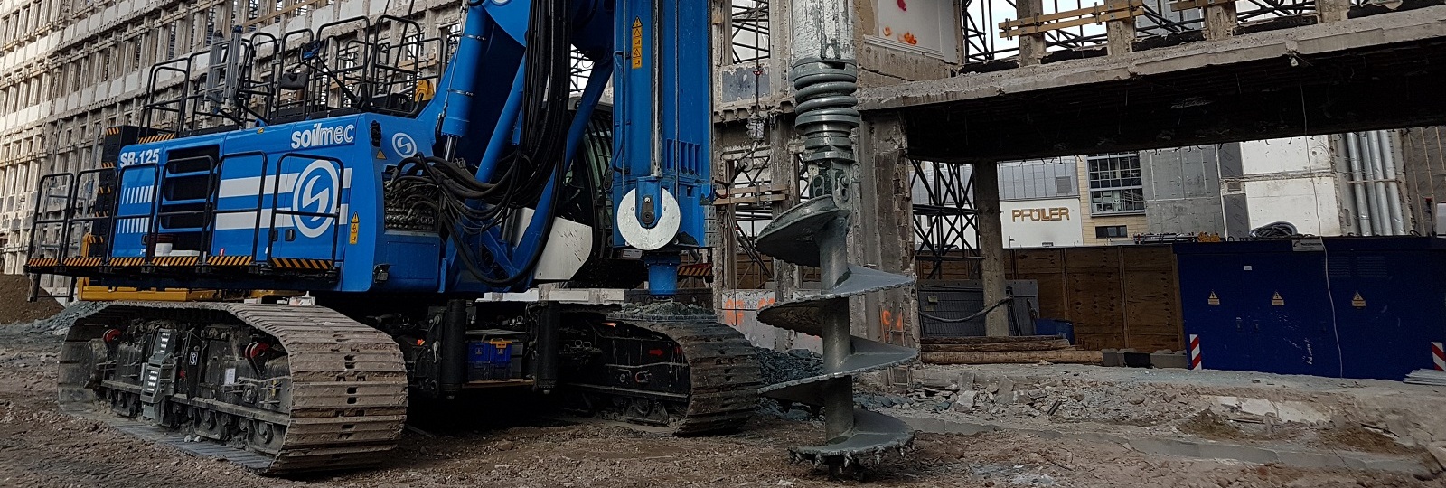 I lavori sono iniziati con pali di fondazione. Le profondità di perforazione per i pali della fondazione combinata palo-lastra raggiungono i 40 m. Per quanto riguarda la loro esecuzione, si utilizza una combinazione di perforazione a tubi e a sospensione.
