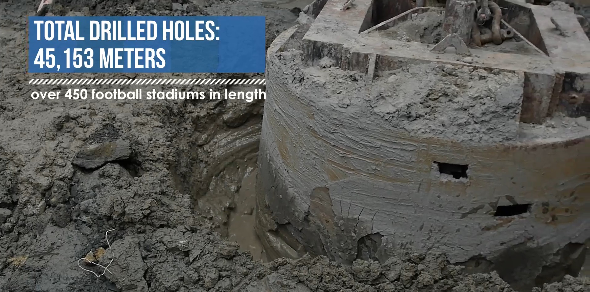 A high voltage line run along a large section of the layout and it could have blocked the execution of the piles until its removal. To avoid possible delays before the final relocation of said line, Trevi Foundations Philippines studied the required changes and customised two rigs in order to have a “Low Headroom” configuration. In this way, the rig could operate safely under the existing power lines independently of the repositioning of the same, therefore ensuring continuity of production and execution times.