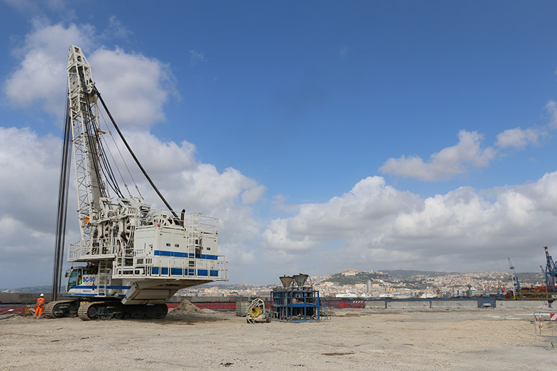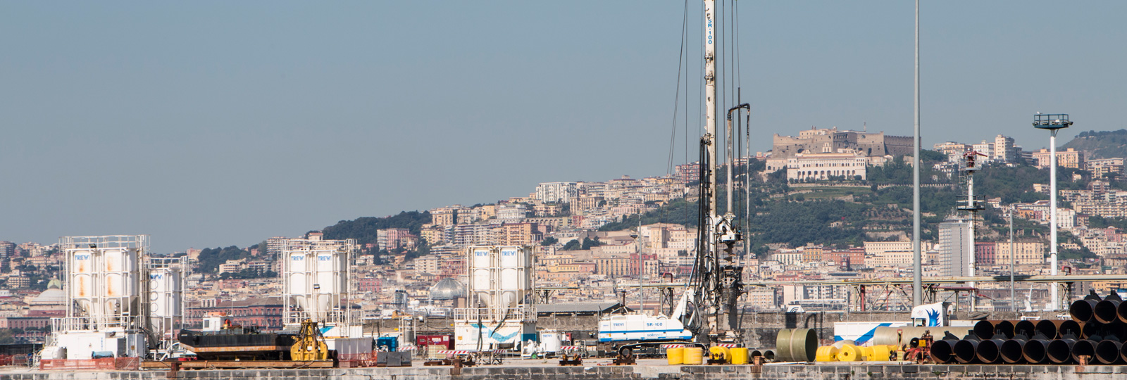 A.T.I. Trevi (Trevi – C.C.C.) sta realizzando al Porto di Napoli il secondo stralcio esecutivo del progetto generale per la costruzione di un nuovo Terminal Contenitori e Cassa di Colmata nella esistente Darsena di Levante. L’Ente Committente è l’Autorità Portuale di Napoli.