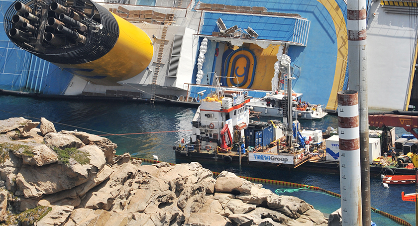 Il Gruppo Trevi, a seguito all’incidente della Costa Concordia, semiaffondata ed adagiata a mezzacosta presso l’Isola del Giglio (13 gennaio 2012), si è distinto fin dalle prime fasi di realizzazione del progetto di recupero del relitto.